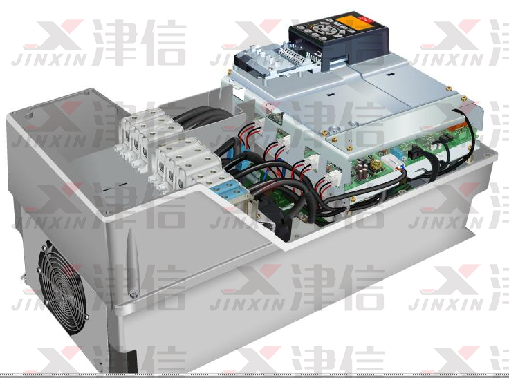 丹佛斯FC0302P37K5T5E55變頻器功率為37KW,封裝等級(jí)為I55,該機(jī)型拆裝比較簡單。根據(jù)客戶的反映情況,檢查該變頻器。先拆上蓋板,可以看到變頻器的全部概括(如下圖)。依次拆下變頻器的圖型面板、控制卡、后再拆固定板,可以把電源卡取下。測(cè)試電源卡整流模塊,逆變模塊,電解電容,全部正常。但是送電就顯示A33故障。