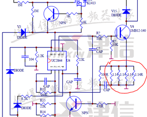 拆下電源卡,查看相關(guān)電路圖紙,測(cè)量發(fā)現(xiàn)開關(guān)電源部分的MOS管1MB12-140的E極回路上4個(gè)電流采樣電阻阻值不正常(如下圖1所示),4個(gè)采樣電阻阻值均為1.14歐姆,采用并聯(lián)方式連接,并聯(lián)后阻值為0.3歐姆,更換這些采樣電阻,上電顯示正常,故障修復(fù)。